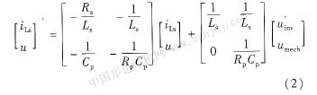 式中,作為機(jī)械振動定子的等效電量反饋給逆變電路,得到單相諧振變換器的簡化狀態(tài)方程: