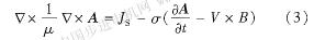式中:a為矢量磁位;μ為磁導(dǎo)率;σ為電導(dǎo)率;v為運(yùn)動(dòng)媒介速度;js為源電流密度。 忽略端部效應(yīng)并加入邊界條件,可得到永磁電動(dòng)機(jī)瞬態(tài)電磁場的定解方程:
