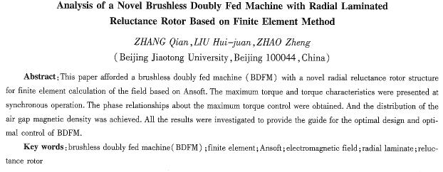 關(guān)鍵詞:無刷雙饋電機;有限元;ansoft;電磁場;徑向疊片;磁阻轉(zhuǎn)子