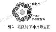 磁阻轉(zhuǎn)子的作用是調(diào)制定子磁動勢產(chǎn)生的氣隙磁通,從而實現(xiàn)機電能量轉(zhuǎn)換。本文所采用的磁阻轉(zhuǎn)子是由薄硅鋼片徑向疊片構(gòu)成,稱為徑向疊片的磁阻轉(zhuǎn)子,圖2為轉(zhuǎn)子沖片示意圖。該轉(zhuǎn)子結(jié)構(gòu)不同于文獻[1]的軸向疊片磁阻轉(zhuǎn)子(簡稱為ala磁阻轉(zhuǎn)子),與ala磁阻轉(zhuǎn)子相比,其制作工藝相對簡單,由于硅鋼片的疊壓方式與傳統(tǒng)電機相同。因此該