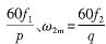 當在功率繞組(p對極)和控制繞組(q對極)中分別通入頻率為f 1和f 2的三相對稱正弦交流電流時,在氣隙中將產(chǎn)生兩個旋轉(zhuǎn)轉(zhuǎn)速分別為ω1m=  墜的磁動勢波,當電機轉(zhuǎn)子極數(shù)pr滿足pr=p+q的約束、且電機轉(zhuǎn)速ωr與兩定子繞組電流頻率f 1,f 2滿足下式的約束條件: