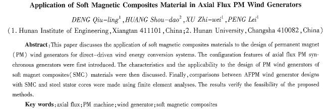 軟磁復(fù)合材料在軸向磁場(chǎng)永磁風(fēng)力發(fā)電機(jī)中的應(yīng)用