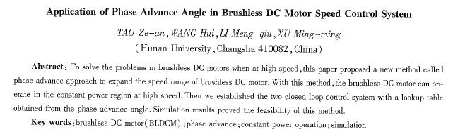相位超前角在無刷直流電動(dòng)機(jī)調(diào)速中的應(yīng)用
