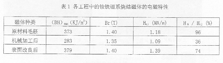 經(jīng)過表面改良處理,可以明顯地看到磁鋼的矯頑力h。.提高和磁能積(bh)一的恢復(fù)。特別是用dy1.4微米成膜,再經(jīng)過900℃/l0min.+600℃/20min+的熱處理后,審0.9mm的磁鋼的h cj |