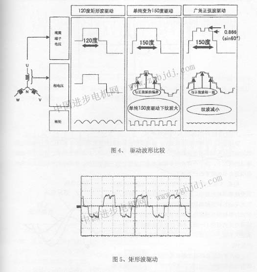 由于這種廣角正弦驅(qū)動(dòng)不含有5次和7次高頻成分,所以從原理上講可以大幅減少力矩的紋波。另外,這種臺(tái)形波驅(qū)動(dòng)的失真率是百分之4. 4,所以從理論上臺(tái)形波驅(qū)動(dòng)更為有利。