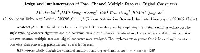 關(guān)鍵詞:全數(shù)字型;雙通道多極旋轉(zhuǎn)變壓器;組合糾錯;dsp