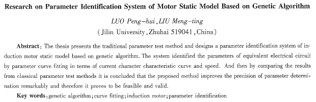 關(guān)鍵詞:遺傳算法;曲線擬合;感應(yīng)電動機;參數(shù)辨識