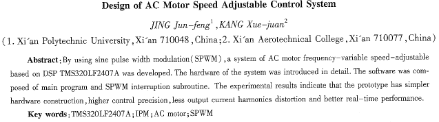 關(guān)鍵詞:tms320lf2407a;ipm;交流異步電機(jī);spwm