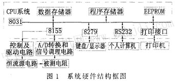 電機(jī)繞組電阻及溫升自動(dòng)測(cè)試儀的硬件主要由6個(gè)功能模塊組成:cpu系統(tǒng)、恒流源電路、信號(hào)調(diào)理和a/d轉(zhuǎn)換電路、控制及驅(qū)動(dòng)電路、鍵盤(pán)/顯示器電路和外部接口電路(見(jiàn)圖1)。