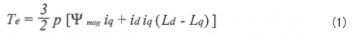 永磁同步電機(jī)轉(zhuǎn)矩通?捎孟惹疤岬降膮(shù)和極對(duì)數(shù)p來(lái)表達(dá),如式(l)所示。高性能轉(zhuǎn)矩控制常使用式(1)第二項(xiàng)所給出的磁阻轉(zhuǎn)矩。這種控制需要知道ld、lq和ψmag值。制造商所用的永磁無(wú)刷同步電機(jī)沒(méi)有提供先前提到的參數(shù)工作范圍值。即使提供了參數(shù),也僅僅表示一個(gè)工作點(diǎn)。前述工作在低速下完成,清楚顯示出當(dāng)電機(jī)負(fù)載時(shí),這些參數(shù)顯著地非線性變化。因此,當(dāng)超出電機(jī)整個(gè)速度負(fù)載范圍時(shí),模型參數(shù)ld. lq和ψmag被看作固定值,這將導(dǎo)致先前提到的電流控制算法錯(cuò)誤低效地使用。