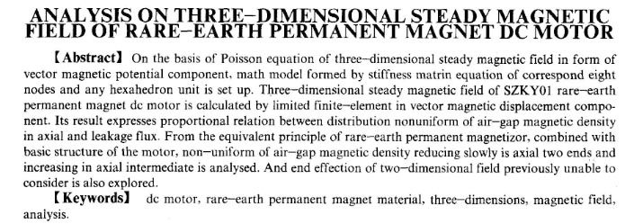 【敘詞】直流電動機稀土永磁材料三維磁場分析