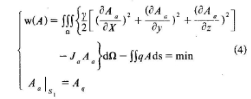 從上面可知,一個矢量位泊松方程對應(yīng)著三個標(biāo)量位泊松方程。若采用矢量方程,當(dāng)剖分網(wǎng)格節(jié)點為n,則最后的系數(shù)矩陣階數(shù)為3n×3n。而采用務(wù)量形成的標(biāo)量方程,雖然需要分次求解運算,但由于系數(shù)矩陣的階數(shù)只有nxn階,故可節(jié)省大量計算機內(nèi)存和cpu時間,而且每一個方程的物理概念明確,邊界條件容易處理。因此,本文選用矢量位分量形式的泊松方程,作為三維有限元分析的基礎(chǔ)。