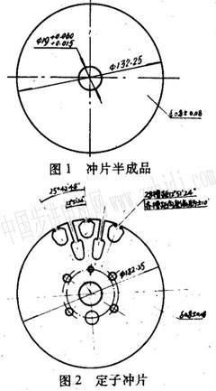 將沖片半成品(如圖1所示)一次加工成定子沖片(如2所示)。