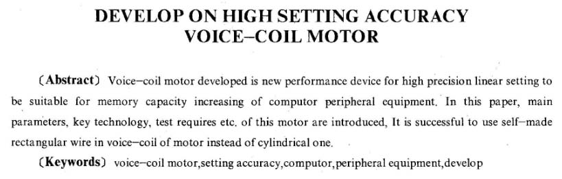 【敘 詞】音圈電動機定位精度計算機外圍設(shè)備研制