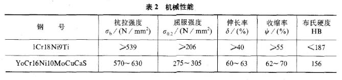 4易切剴奧氏體不銹鋼( yocr16nilomocucas) 與奧氏體不銹鋼(1cr18ni9ti)的性能比較