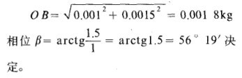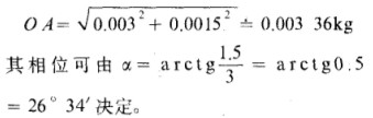 平面i上的0.003kg和0.001 5kg的平衡質(zhì)量間隔90度而且都在同一圓周上,它們的合成質(zhì)量可應(yīng)用平行四邊形法求得為: