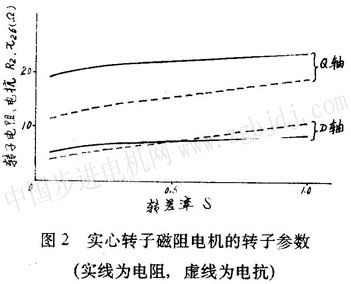 轉(zhuǎn)子轉(zhuǎn)動(dòng)慣量jr=1.988×10-3kg·m2對(duì)于疊片式轉(zhuǎn)子電機(jī),在起動(dòng)性能數(shù)值計(jì)算中通常認(rèn)為轉(zhuǎn)子參數(shù)保持某一定值不變。但對(duì)實(shí)心轉(zhuǎn)子磁阻電動(dòng)機(jī)來(lái)說(shuō),這一假設(shè)將會(huì)導(dǎo)致明顯誤差。由圖2可見(jiàn),實(shí)心轉(zhuǎn)子電機(jī)的轉(zhuǎn)子參數(shù)均為轉(zhuǎn)差率s的函數(shù),不再為常數(shù)。在電機(jī)起動(dòng)性能仿真計(jì)算中應(yīng)考慮這一影響。