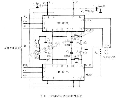 由兩個(gè)pbil3717a可組成一個(gè)驅(qū)動(dòng)兩相混合式步逆電動(dòng)機(jī)的微機(jī)控制系統(tǒng).由微型計(jì)算機(jī)的軟件沒汁.以正確的i0、i1和phase時(shí)序可以實(shí)現(xiàn)步進(jìn)電動(dòng)機(jī)的3種運(yùn)行方式。