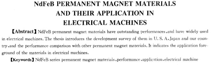 【敘 詞】釹鐵硼系永磁材料性能應(yīng)用電機(jī)