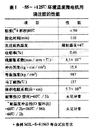 用于-55~+125℃環(huán)境溫度的澆注膠是為滿足微電機(jī)的需要而研制的。產(chǎn)品采用美國(guó)軍用技術(shù)條件的高低溫要求考核。該澆注膠研制的主要技術(shù)難度在于電機(jī)的低溫儲(chǔ)存溫度要求為一62~c,****工作溫度范圍約為-55~+180℃(考慮了電機(jī)的溫升),電機(jī)定轉(zhuǎn)子的單邊氣隙在除去防銹涂敷漆的厚度之后不到o.05mm。必須保證在此條件下電機(jī)在高溫環(huán)境及運(yùn)行過(guò)程中不致掃膛、卡死。同時(shí)低溫環(huán)境下不可有膠層開(kāi)裂而致報(bào)廢。據(jù)了解,國(guó)內(nèi)還沒(méi)有滿足以上要求的澆注膠。為此,從1983年開(kāi)始研制,于1986年12月通過(guò)了部局級(jí)技術(shù)鑒定。澆注膠在幾種規(guī)格的產(chǎn)品中應(yīng)用表明,性能良好,產(chǎn)品主要技術(shù)指標(biāo)達(dá)到國(guó)外同類產(chǎn)品的先進(jìn)水平。