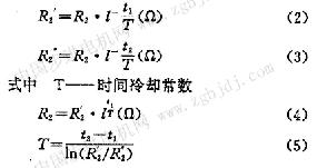 斷電后,由于做不到立即測(cè)量電阻,而造成溫度下降,這時(shí)從斷電到真正測(cè)得溫度這段時(shí)間內(nèi),繞組溫度按指數(shù)下降。為補(bǔ)償下降的溫度,應(yīng)計(jì)算出修正值。例如經(jīng)過(guò)t。、如后測(cè)得的電阻值分別為砭和砭,則有下列關(guān)系: