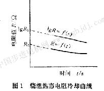 原國(guó)標(biāo)gb755—81《電機(jī)基本技術(shù)要求》規(guī)定,不分功率大小,一律按“電機(jī)各部分的溫度在切離線路后測(cè)得,測(cè)得溫度應(yīng)加以修正。電機(jī)在溫升試驗(yàn)終結(jié)而切離電路瞬間的溫度,可用冷卻曲線延長(zhǎng)而外推至切離線路瞬間的方法求得”(冷卻曲線及外推法見圖1)。