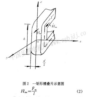 例如有一矩形槽電樞鐵心,如圖2所示,設(shè)鐵心的磁勢(shì)為fm,礅路的平均長(zhǎng)度為l,則疊片表面的磁場(chǎng)強(qiáng)度的復(fù)數(shù)振幅平均值為: