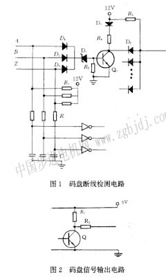 圖1是碼盤斷線檢測與顯示電路。圖2是一類碼盤中任一信號的輸出電路,F(xiàn)說明其工作原理。