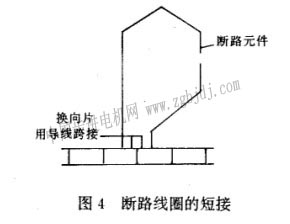 電樞繞組斷路最易發(fā)生在電樞繞組與換向器的焊接處,也有可能發(fā)生在槽內(nèi)。后者是由于電動(dòng)機(jī)出現(xiàn)短路或接地故障,電流過(guò)大而燒斷線圈。