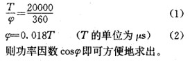 因?yàn)橄嚯妷杭跋嚯娏鞯念l率均為工頻50hz(對(duì)應(yīng)周期為20000μs),而一個(gè)周期對(duì)應(yīng)的電角度為360度,故當(dāng)t值被測(cè)定后,電機(jī)的功率因數(shù)角φ即可按下式計(jì)算: