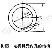 電機機殼內(nèi)孔與壓入的鐵心外圓相配,要求有較高的加工精度。為了有效地防止鐵心轉(zhuǎn)動,機殼與鐵心之間有鍵連接。按此要求設(shè)計的電機機殼內(nèi)孔的結(jié)構(gòu)如附圖所示。機殼內(nèi)孔的加工過程通常是先粗車、精車內(nèi)孔,然后再刨或插鍵槽。由于鍵槽深度h有一定的公差要求,因此必須有具備相應(yīng)的專用量規(guī)。在設(shè)計該量規(guī)時,為了避免因鍵槽對內(nèi)孔中心的對稱誤差而造成的兩側(cè)面深度不同以及由此而引起的測量困難,我們是通過采用h尺寸的檢驗量規(guī)來保證鍵槽深度h的,本文用實例簡單介紹該量規(guī)的設(shè)計,此方法也適用于類似工件的量規(guī)設(shè)計。