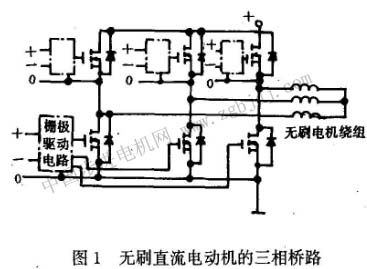 無(wú)刷直流電動(dòng)機(jī)廣泛采用橋式電路,而vmos管或igbt是其主要應(yīng)用的功率器件。圖1繪出了vmos管的三相橋路(繞組星形接線),igbt與其類似。