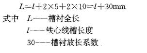 從a級提高到e級絕緣(聚脂薄膜電工紙箔),并可增加電機運行溫度15℃。槽襯兩端部要伸出鐵心外各5mm,同時要卷回重迭于槽內(nèi)兩端各5mm,以強化槽口的絕緣強度,避免傷害導(dǎo)線,造成對地短路,可用下列公式計算。