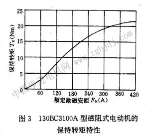 圖3表示130bc3100a型磁阻式電動(dòng)機(jī)的保持轉(zhuǎn)矩特性,曲線 |