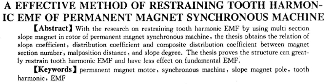 【敘 詞】永磁電機(jī)同步電機(jī)/斜磁鋼磁極齒諧波電勢(shì)