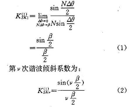 磁鋼傾斜、定子槽不傾斜,與轉(zhuǎn)子磁鋼不傾斜、定子槽傾斜在定子繞組中感應(yīng)電勢(shì)的效果一致,因此,傾斜系數(shù)可按斜槽系數(shù)導(dǎo)出。