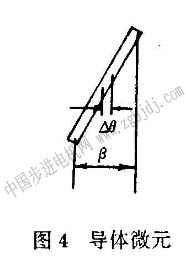 如圖4所示,設(shè)有一導(dǎo)體,認(rèn)為由n個(gè)相同的微段導(dǎo)體串聯(lián)而成,相鄰兩微導(dǎo)體之間相距角為(rad),則基波傾斜系數(shù)為: