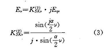 如果第k塊磁鋼產(chǎn)生的磁通在定子繞組中感應(yīng)的第v次諧波電勢(shì)為eqv.eikvα則j塊磁鋼產(chǎn)生的磁通感應(yīng)的第v次諧波電勢(shì)為: