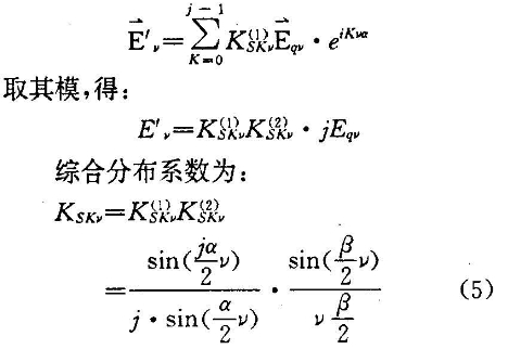 由于相鄰兩塊磁鋼之間有錯(cuò)位,則每塊磁鋼產(chǎn)生的磁通在同一導(dǎo)體中感應(yīng)的同一次諧波電勢(shì)存在相位差,使得合成的諧波電勢(shì)得到消弱,消弱的程度用分布系數(shù)表示。
