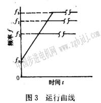在以上參數(shù)中,難以確定的是步進(jìn)電機(jī)的加速度和減速度。計(jì)算機(jī)控制的加速過(guò)程能否成功,取決于加速脈沖的增加速率是否合適。步進(jìn)電機(jī)的加速度與失步轉(zhuǎn)矩特性有關(guān),根據(jù)參考文獻(xiàn)1和2,步進(jìn)電機(jī)的矩頻特性曲線如圖1所示,從這種矩頻特性分析,符合這種特性的升降衄線是采用變加速度,即指數(shù)型運(yùn)行曲線如圖2所示,這種曲線比較符合步進(jìn)電機(jī)加減速過(guò)程的運(yùn)行規(guī)律,能充分利用步進(jìn)電機(jī)的有效轉(zhuǎn)矩,快速響應(yīng)性好。文獻(xiàn)1和2所給出的獲得升降速參數(shù)的方法均為查表的方法,即事先把運(yùn)行曲線逐段線性化,計(jì)算出各速度級(jí)對(duì)應(yīng)的升降速參數(shù)序列,以表格形式存放,供電機(jī)不同速度時(shí)分別調(diào)用。這種方法在勻速度可任意改變時(shí)就無(wú)法滿足要求了,因?yàn)椴豢赡茴A(yù)先存儲(chǔ)太多的表格供調(diào)用,而且制表很繁瑣。為此提出一種在單片微機(jī)上實(shí)現(xiàn)十分簡(jiǎn)便而又近似****加速過(guò)程的實(shí)現(xiàn)方法。