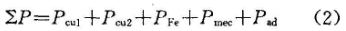 式中電機(jī)的總損耗,即電機(jī)定子繞組銅損耗、轉(zhuǎn)子繞組銅損耗、鐵損耗、機(jī)械損耗及負(fù)載附加損耗之和,表示為:
