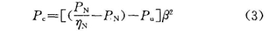 鐵損耗由電機(jī)氣隙主磁通引起,取決于氣隙磁場交變頻率和磁密大;機(jī)械損耗是由于電機(jī)轉(zhuǎn)子運(yùn)動而產(chǎn)生的摩擦損耗和風(fēng)阻損耗,只與電機(jī)轉(zhuǎn)速有關(guān);在異步電動機(jī)的正常工作范圍內(nèi),電機(jī)轉(zhuǎn)速及氣隙主磁通近似不變,鐵損耗與機(jī)械損耗稱為不變損耗,記作pu0。在電機(jī)總損耗中,pcu1、pcu2及pad與電機(jī)輸出功率大小有關(guān),近似正比于電動機(jī)的負(fù)載率β的平方,稱為可變損耗,記作pc假設(shè)電機(jī)額定效率為ηn,則pc表示為: