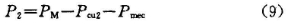 機(jī)械損耗pmec與轉(zhuǎn)速的平方成正比變化,電動機(jī)穩(wěn)定運(yùn)行時轉(zhuǎn)速變化幅度不大,p2增加,s增大,pmec略有減少。轉(zhuǎn)子銅耗pcu2為: