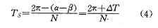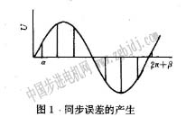 設(shè)被測(cè)信號(hào)u(t) =umsin(ωt),其有效值為專(zhuān)導(dǎo),一周等間隔采樣n+l點(diǎn),第一個(gè)采樣點(diǎn)在α處,最后一個(gè)采樣點(diǎn)在27π+β處(見(jiàn)圖1),如果β≠α,則存在同步誤差,實(shí)際采樣間隔為;