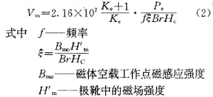永磁體的體積vm,主要與電機的電磁功率p。電壓與定子繞組空載電勢eo的比值k.以及所采用的磁鋼牲能(剩磁br,矯頑力hc)等因素有關。即:
