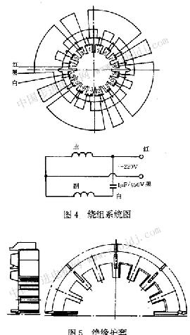 2.1振動小噪聲低 該電機定子系采用整體塑封工藝,其空隙部分已全部塑料填充為一個實體,故與金屬外殼電機相比,其噪聲和振動都大為降低。 表面,從而使與導線絕緣(見圖5)。 2.2絕緣性好安全可靠 由于電機外殼全部是塑料包容面,鐵心 和繞組均不外露,故其耐潮性能、絕緣性能和 抗電強度均高于普通電機。 2.3定子鐵心兩半圓拼裝 為了適應(yīng)自動流水線生產(chǎn)工藝的模式,故將定子鐵心采用兩半圓拼裝結(jié)構(gòu),其繞組為環(huán)形螺旋式,導線可直接繞于鐵心上。這樣可省去繁重的手工嵌線工藝、大大節(jié)省工時。如能配置數(shù)控自動環(huán)形繞線車,則生產(chǎn)效率將大為提高(見圖2、圖3、圖4)。