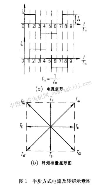 相繞組電流波形和相應(yīng)的靜轉(zhuǎn)矩相量星形圖?梢郧宄闯,由于半步方式是通過改變通電相數(shù)實(shí)現(xiàn)的,提高步進(jìn)電動機(jī)的分辨率的同時,損失了轉(zhuǎn)矩的利用率。一相通電狀態(tài)時的轉(zhuǎn)矩(tl)明顯小于二相通電狀態(tài)時的轉(zhuǎn)矩(t2)。在理想情況下,即矩角特性為正弦波形,當(dāng)其幅值與電流成線性關(guān)系時,