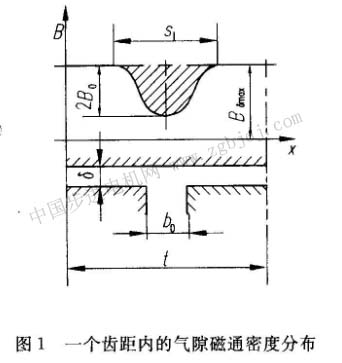氣隙系數(shù)kδ是考慮到電機(jī)開槽因槽口對(duì)氣隙磁場(chǎng)的影響而引入的系數(shù)。在一般微型直流屯機(jī)的設(shè)計(jì)中常采用半閉口槽,開槽對(duì)氣隙磁場(chǎng)的影響如圖1所示。