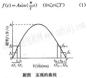 式中π=3.1415926,t為步進電機的運行時間。實現(xiàn)這種函數(shù)曲線的優(yōu)點為: