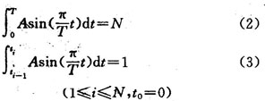 假設步進電機驅(qū)動負載時的某工況為,在t時間內(nèi)需要步進電機運行n步,電機的****運行頻率為fm,起始頻率和終了頻率都為零。運行曲線為式(1)的f(t),把t分為n份,即△t1,△t2,……,△tn,t=△t1+△t2+……+△tn。令: